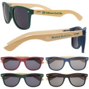 These wooden bamboo sunglasses will definitely turn heads when your customers head out into the summer sun. The wood arms are hand-crafted from 100% renewable bamboo wood and are attached to the fronts with durable metal hinges. These glasses also provide 100% UV protection and feature shatter resistant lenses.